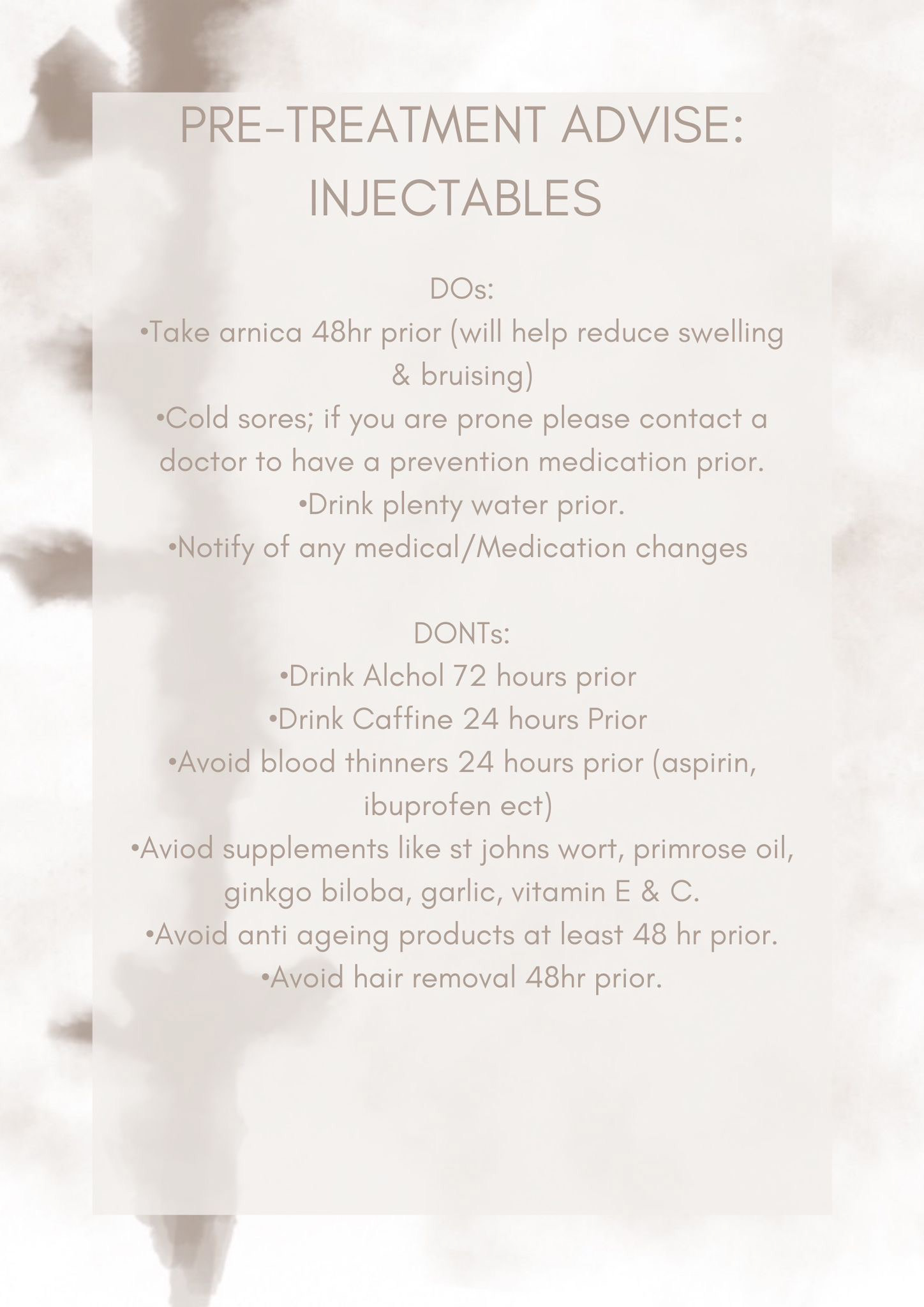 INJECTABLES PRE-TREATMENT INSTRUCTIONS