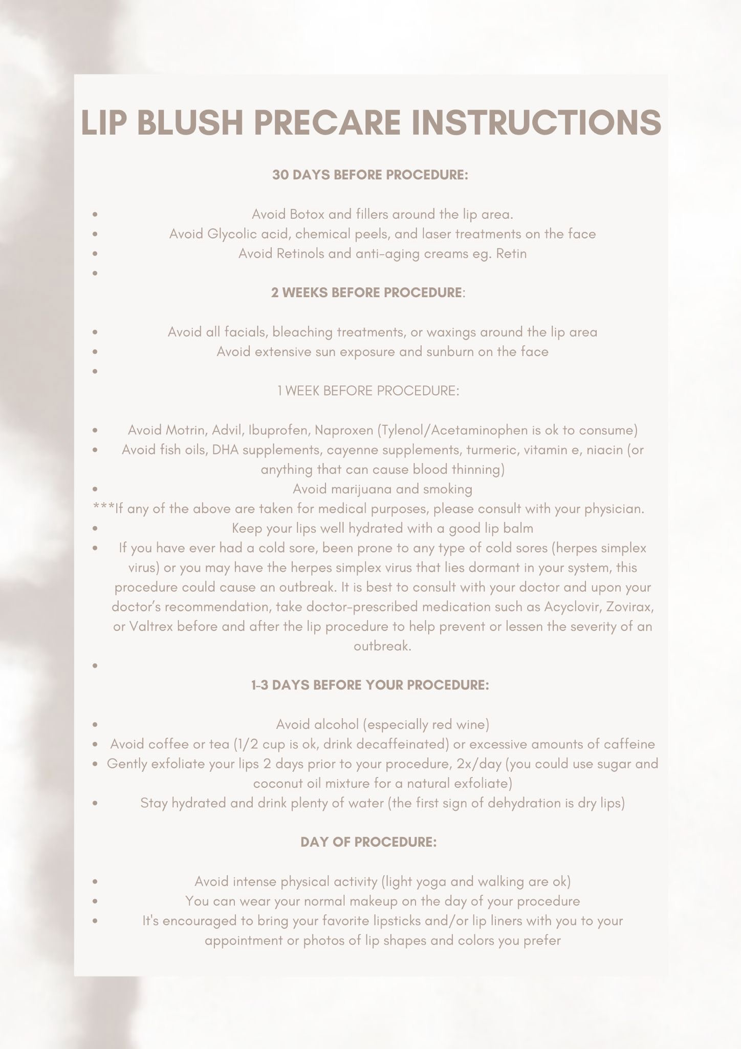 LIP BLUSH PRE-TREATMENT INSTRUCTIONS