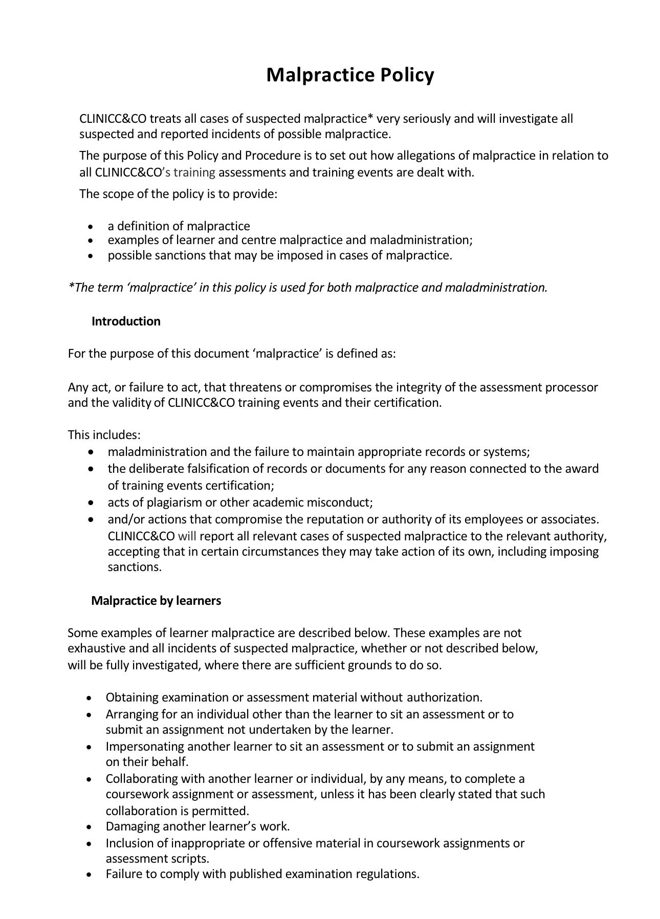 Malpractice Policy